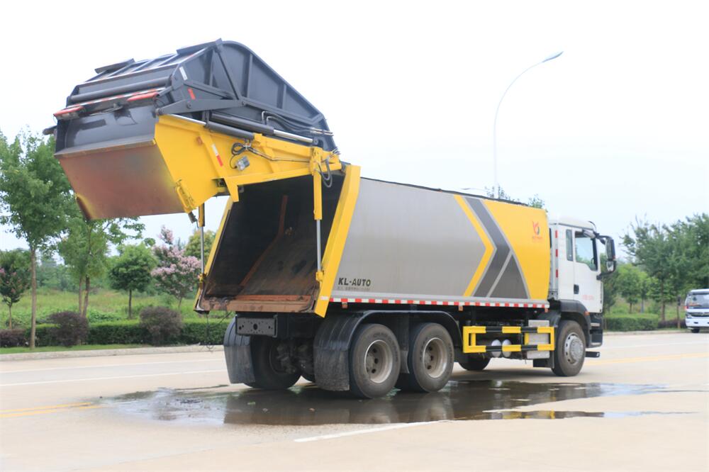 上裝配置:垃圾箱容積:20方,新款平面弧形廂體,廂體材料為武鋼優(yōu)質碳鋼,PLC一鍵操作**,手電一體操作模式,兩側雙電控,帶駕駛室內操作,底板支撐加強,雙向壓縮,開放式易清潔污水箱。壓縮式垃圾車采用機電液一體化技術,借助機、電、液聯(lián)合自動**系統(tǒng)、電腦**、手動操作系統(tǒng),通過填裝器和推鏟等專用裝置,實現(xiàn)垃圾倒入、壓碎或壓扁、強力裝填,把垃圾擠入車廂并壓實和推卸,污水全部進入污水廂,解決了垃圾運輸過程中的二次污染的問題。壓縮式垃圾車具有自動反復壓縮以及蠕動壓縮功能,壓縮比高、密封性好、裝載量大﹑操作方便、環(huán)保性好﹑整車利用功率高等優(yōu)點。作業(yè)自動化,垃圾收集方式簡便、高效。后翻轉機構選裝:1、掛塑料桶式翻轉機構;2、掛鐵桶式翻轉機構;3、擺臂式翻轉機構; 4、簸箕斗式翻轉機構。