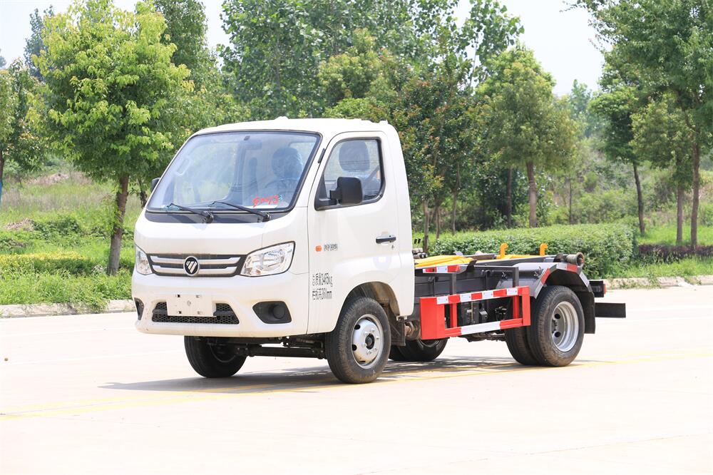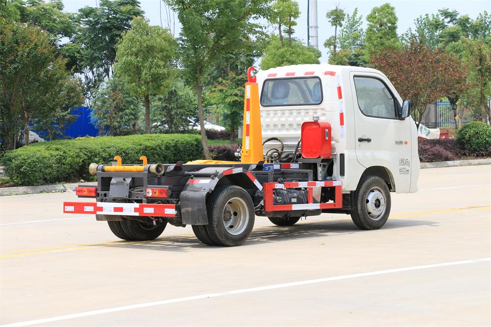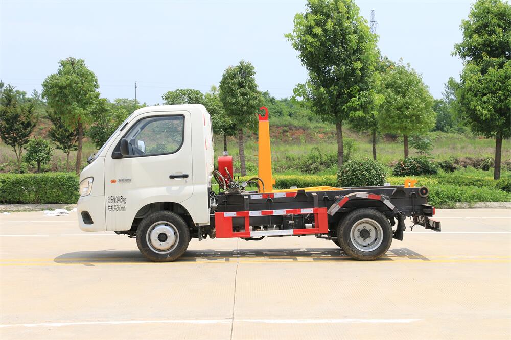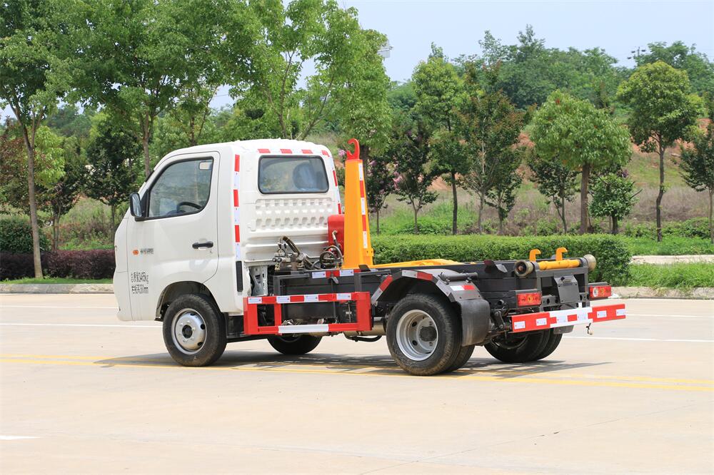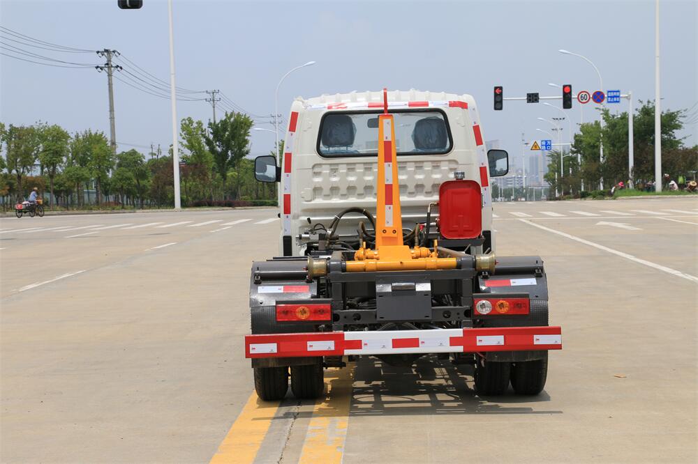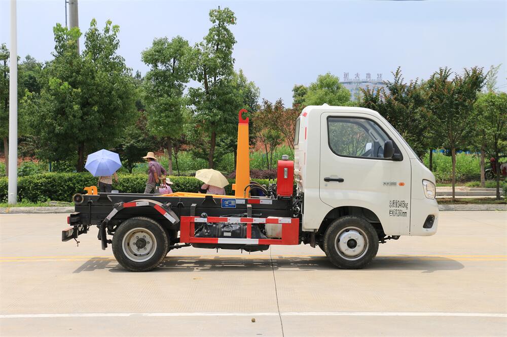 勾臂式垃圾車(車廂可卸式垃圾車)介紹: 車廂可卸式垃圾車又叫拉臂式垃圾車,是一種采用高新設(shè)計(jì)可伸縮的鉤臂,實(shí)現(xiàn)垃圾廂的二次吊裝,自吊上放下,可自行傾倒垃圾的環(huán)衛(wèi)設(shè)備。 拉臂式垃圾車結(jié)構(gòu)簡單,操作穩(wěn)定方便,裝卸效率高,機(jī)械化程度高,節(jié)省人力。鉤臂垃圾車一車可帶多個(gè)垃圾廂,在裝卸的運(yùn)輸過程中可有效地避免二次污染。 拉臂垃圾車采用高新設(shè)計(jì)可擺動的鉤臂,垃圾箱由框架、開啟油缸、滑輪、后門和若干加強(qiáng)框架與鋼板焊接而成。調(diào)換貨廂快捷方便,貨廂上帶蓋(倒垃圾時(shí)可翻開),鉤臂垃圾車?yán)鴰w可選用碳鋼、不銹鋼材質(zhì)、內(nèi)部采取環(huán)氧樹脂防腐處理,改裝部分與原車底盤為可分離式,維修方便且保持了原車的機(jī)動性及行駛性能。