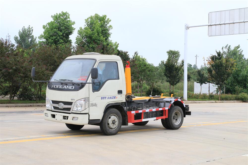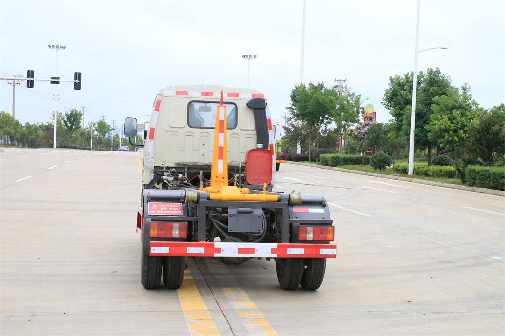 勾臂式垃圾車(車廂可卸式垃圾車)介紹: 車廂可卸式垃圾車又叫拉臂式垃圾車,是一種采用高新設計可伸縮的鉤臂,實現垃圾廂的二次吊裝,自吊上放下,可自行傾倒垃圾的環衛設備。 拉臂式垃圾車結構簡單,操作穩定方便,裝卸效率高,機械化程度高,節省人力。鉤臂垃圾車一車可帶多個垃圾廂,在裝卸的運輸過程中可有效地避免二次污染。 拉臂垃圾車采用高新設計可擺動的鉤臂,垃圾箱由框架、開啟油缸、滑輪、后門和若干加強框架與鋼板焊接而成。調換貨廂快捷方便,貨廂上帶蓋(倒垃圾時可翻開),鉤臂垃圾車垃圾廂體可選用碳鋼、不銹鋼材質、內部采取環氧樹脂防腐處理,改裝部分與原車底盤為可分離式,維修方便且保持了原車的機動性及行駛性能。