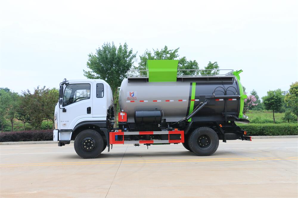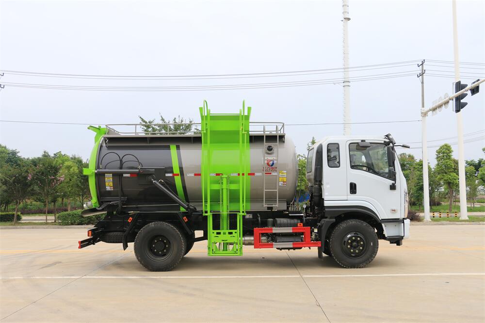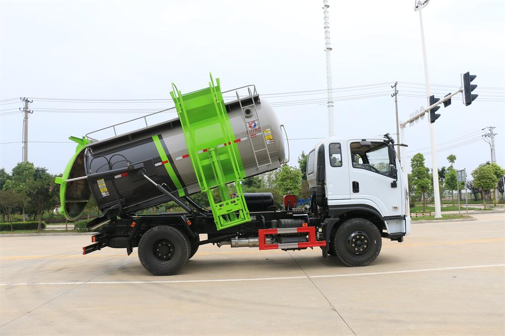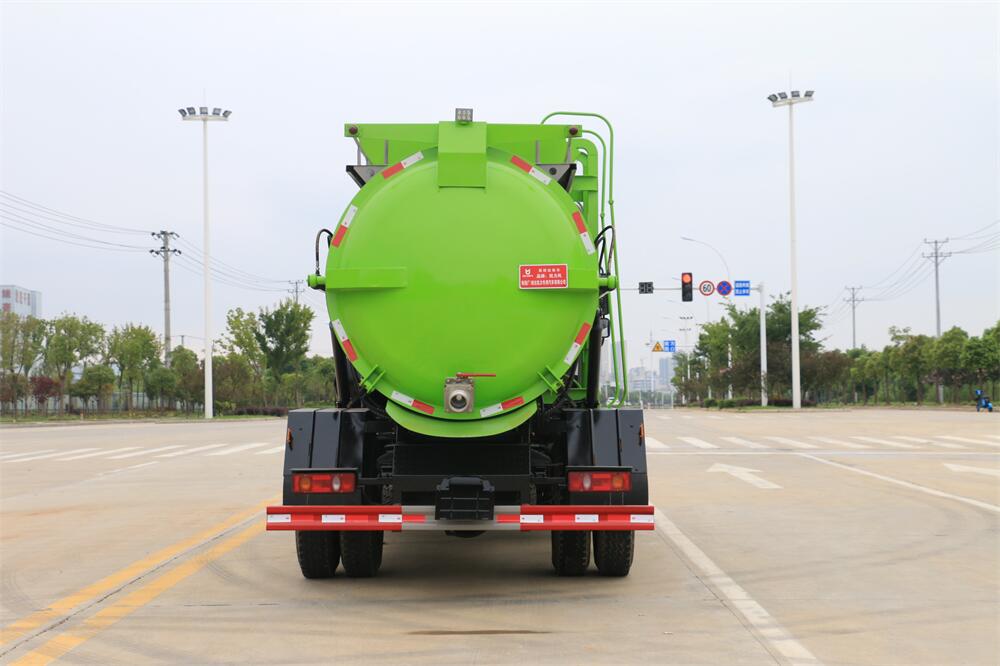 上裝配置:罐體容積10m3,配備120L/240L掛桶提升翻轉(zhuǎn)機(jī)構(gòu),液壓系統(tǒng),后蓋液壓鎖緊開啟,罐體可以舉升自卸,尾部帶自流閥;用于運(yùn)輸液態(tài)垃圾,其特點(diǎn)操作簡單,密封性好,無泄漏,無異味;可選裝固液分離功能,推板擠壓功能,常用于餐館的垃圾轉(zhuǎn)運(yùn)處理。