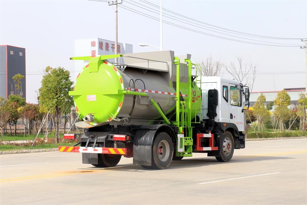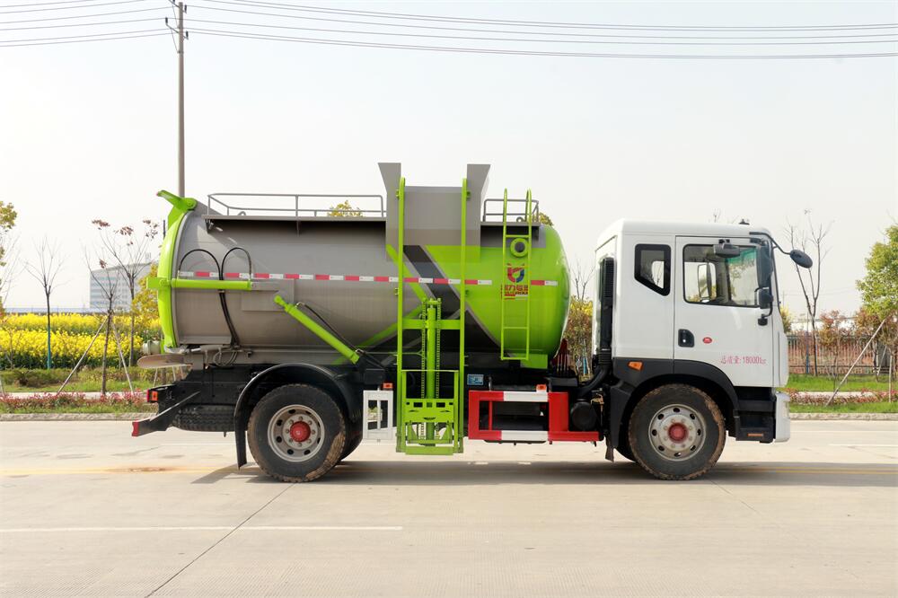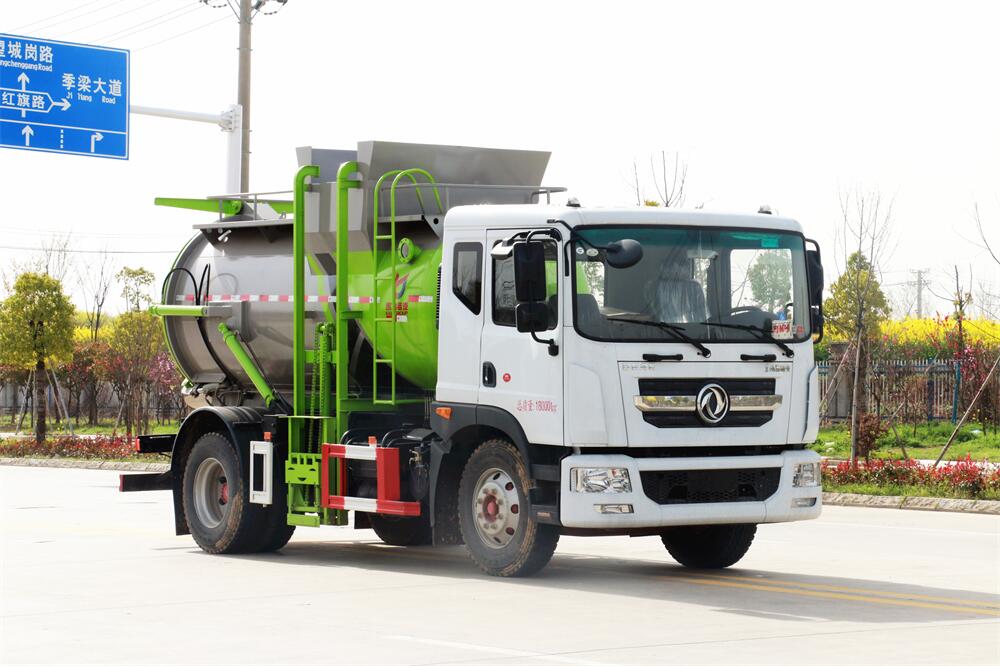 上裝配置:罐體容積10m3,配備120L/240L掛桶提升翻轉(zhuǎn)機(jī)構(gòu),液壓系統(tǒng),后蓋液壓鎖緊開啟,罐體可以舉升自卸,尾部帶自流閥;用于運(yùn)輸液態(tài)垃圾,其特點(diǎn)操作簡單,密封性好,無泄漏,無異味;可選裝固液分離功能,推板擠壓功能,常用于餐館的垃圾轉(zhuǎn)運(yùn)處理。