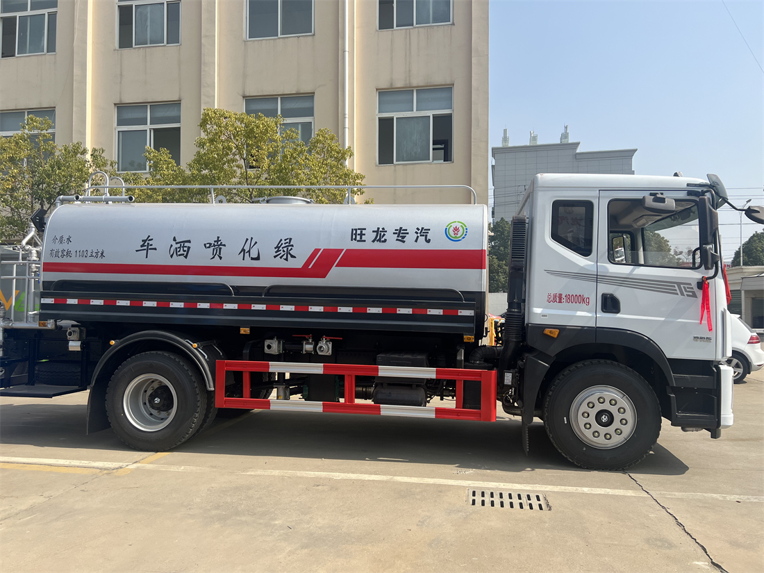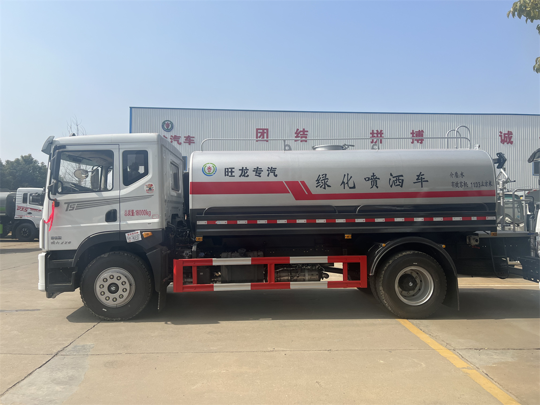 灑水車性能特點:前沖(噴)后灑,帶側噴,罐體后帶工作平臺,平臺上安裝綠化灑水炮,灑水炮可360旋轉,可連續調成直沖狀、大雨、小雨、毛毛雨,帶安全護欄,配備全國質量評比**名的杭州威龍大功率專用  灑水泵,泵可自吸自排,安裝過濾網,帶消防接口,可通過消防栓進水,帶自流閥,隨車選裝20米綠化卷盤,可噴灑農藥。
