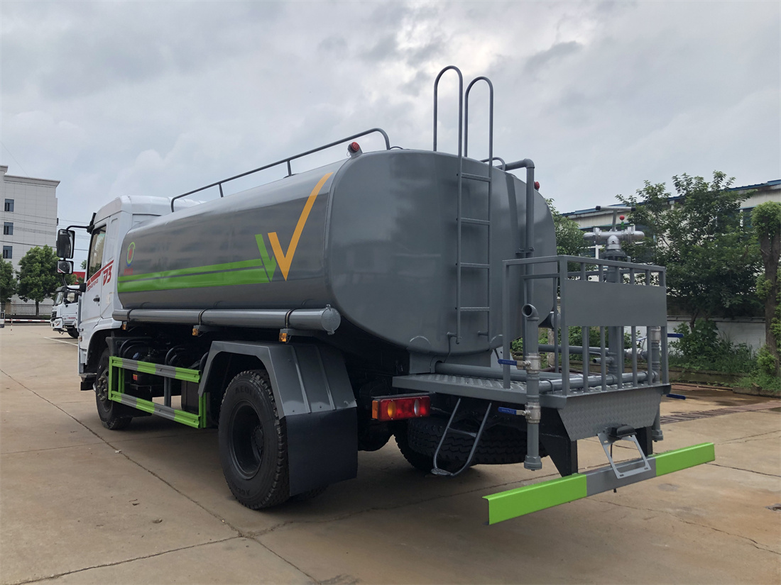 灑水車前裝有鴨形噴嘴或圓頭沖嘴,后面裝有圓柱開灑水噴嘴或蓮蓬頭噴嘴,后部有一工作平臺,裝配有水炮。后部還可裝8個(gè)噴嘴(選裝)。