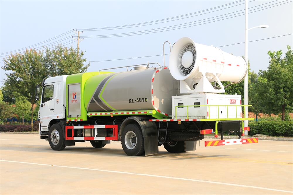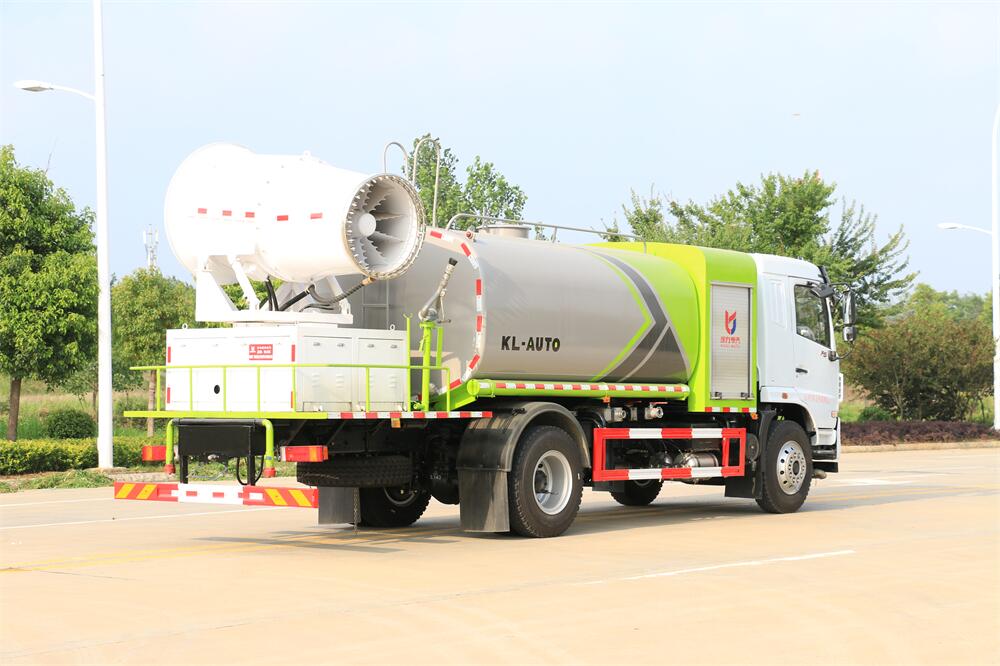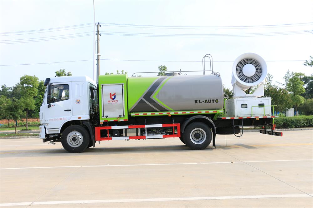 上裝配置:罐體容積為 12立方,選配風(fēng)送式霧炮機(jī)組射程30米、40米、50米、60米、80米、100米、120米霧炮,罐體鋼板為4mm碳鋼Q235材質(zhì),罐內(nèi)隔板具有防波作用,以減輕汽車行駛時(shí)罐體液體沖擊,罐體及整車外形尺寸按照公告。帶大功率專用灑水泵,泵可自吸自排,整車前沖、后灑、側(cè)噴、帶65消防接口,后平臺(tái)配CLW-50、CLW-60、CLW-80、CLW-100、CLW-120型風(fēng)送式霧炮機(jī)組;罐體前封頭配大功率柴油發(fā)電機(jī)組;前封頭帶水位計(jì),后平臺(tái)主管路帶1寸澆花接口,后爬梯。帶兩根輸水管及陰陽端。罐體顏色:銀/灰/綠,罐體兩側(cè)噴“多功能抑塵車”字樣,貼反光標(biāo)示。
