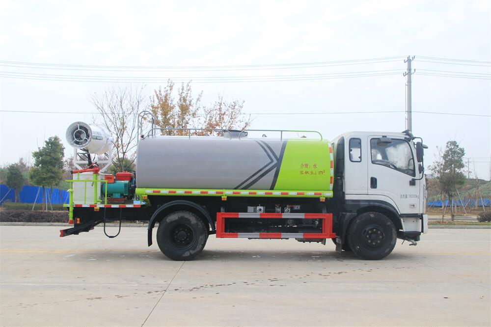 主要由發動機帶動變速箱,變速箱上安裝的取力器帶動灑水泵,灑水泵產生動力,將罐體內部的液體通過管網噴灑出去。工作范圍:自吸高度:≥7m,灑水寬度:≥14m,**大射程:≥28m;可調節成柱狀,射程≥28m;也可調節成霧狀,射程≥5m。