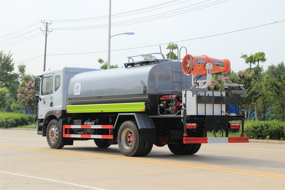 主要由發動機帶動變速箱,變速箱上安裝的取力器帶動灑水泵,灑水泵產生動力,將罐體內部的液體通過管網噴灑出去。工作范圍:自吸高度:≥7m,灑水寬度:≥14m,**大射程:≥28m;可調節成柱狀,射程≥28m;也可調節成霧狀,射程≥5m。