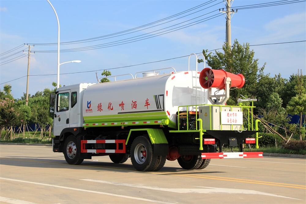 上裝配置:罐體容積 12-15立方,風送式霧炮機組30米,40米選擇,罐體采用國標Q235碳鋼材質,罐體厚度4MM,前后封頭5MM加厚型,罐體內雙層隔板具有防波蕩作用,以減輕汽車行駛時罐內液體沖擊;灑水車整車及外形尺寸嚴格按照**機動車公告制作而成;裝配大功率專用灑水泵,前沖、后灑、側噴、后平臺帶綠化灑水炮,灑水炮可全方位旋轉,可連續調成直沖狀、大雨、小雨、毛毛雨;配消防接口,自流閥,濾網,帶自吸自排功能。前封頭帶水位計,后平臺主管路帶1寸澆花接口,后爬梯,帶1個消防接頭,帶1個自流閥,1個過濾裝置,其余標配。