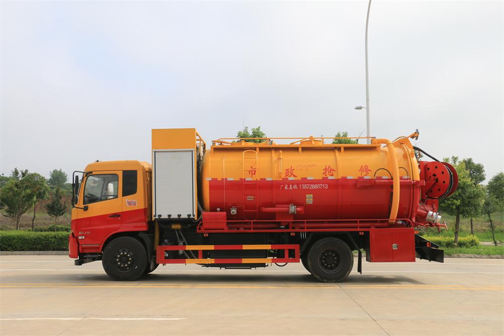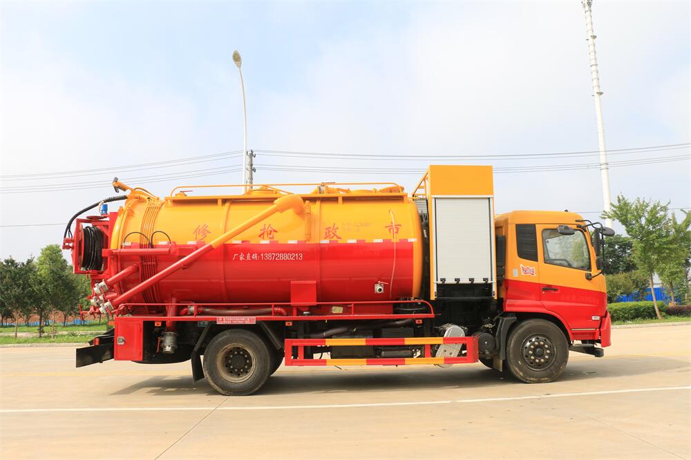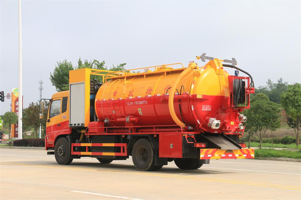 15方15方清洗吸污車-東風(fēng)天錦15方10+5清洗吸污兩用車-帶副發(fā)動機圓罐紅黃色