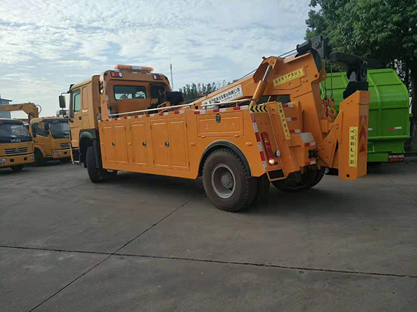 12T16D連體式上裝或16T16D連體式上裝,二節六邊形吊臂,三節托臂,分體式車廂,雙側聯動操作裝置,2個8噸卷揚,45米鋼絲繩,配四套鋼叉,一套拖叉套,一套鋼板吊耳拖叉,一套拖叉套,一套鋼板吊耳拖叉,一套抱胎裝置,**燈一套,**氣管總成16T標配捆綁鏈條兩根。