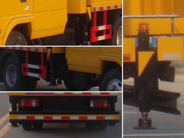 吊鉤為選裝件;前伸440mm;側(cè)面防護及后下部防護裝置材料材質(zhì):Q235,連接方式:焊接加螺栓連接;后下部防護裝置斷面尺寸(寬贅?:30?00(mm),離地高度:440mm;ABS及其**器型號為:APG3550500A4,生產(chǎn)廠家為:浙江亞太機電股份有限公司.