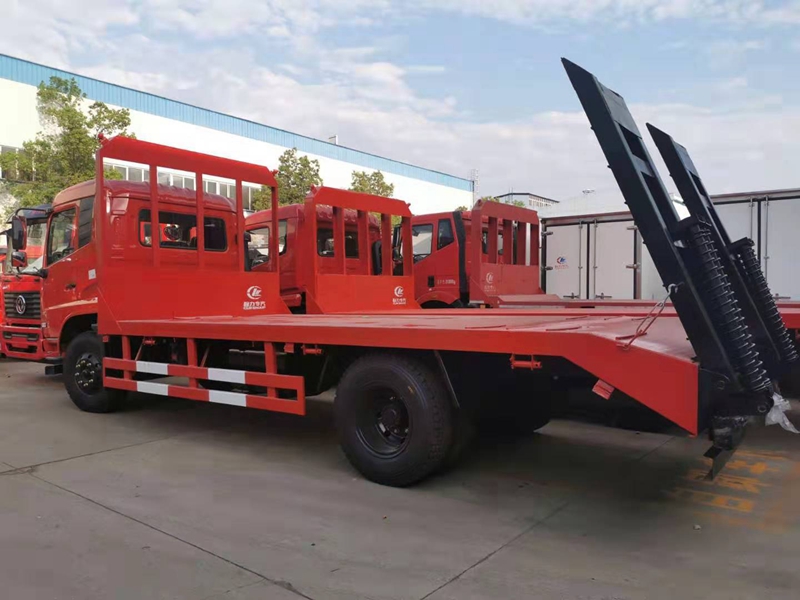 東風天錦單橋平板運輸車 天錦新款VR排半駕駛室 排放:國五新規 發動機:風神180馬力 變速箱:陜齒8檔 前后橋:145加強后橋 可選軸距:4.5/5米軸距 輪胎:900-20鋼絲胎(無備胎) 大梁:280雙層大梁 整車對應尺寸:8600/9000*2550*2800 車型亮點:ABS防抱死系統 . 剎車間隙自動調整臂、防飛濺、遙控鑰匙,電動門窗。 上裝采用五毫米花紋鋼板,100*100方鋼做橫梁,加強雙簧爬梯,可拉15噸以下挖機。 可選裝配置:液壓全自動爬梯,折疊型加長型液壓全自動爬梯,可加裝兩邊伸展,一邊可伸縮30公分。