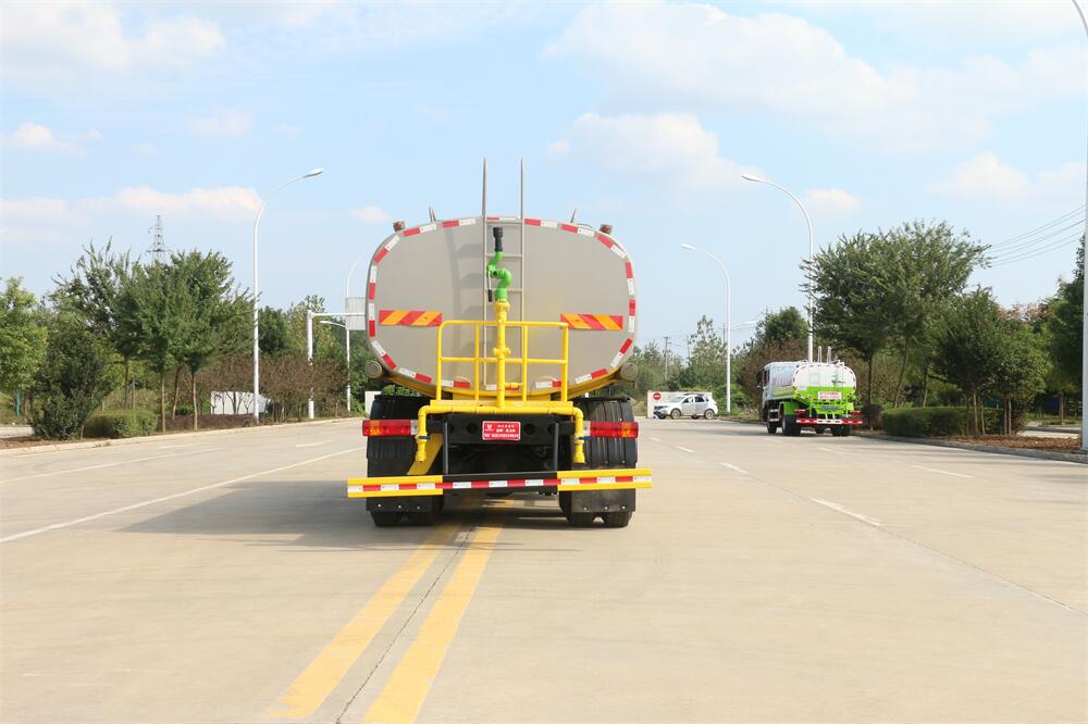 灑水車前裝有鴨形噴嘴或圓頭沖嘴,后面裝有圓柱開灑水噴嘴或蓮蓬頭噴嘴,后部有一工作平臺,裝配有水炮。后部還可裝8個噴嘴(選裝)。