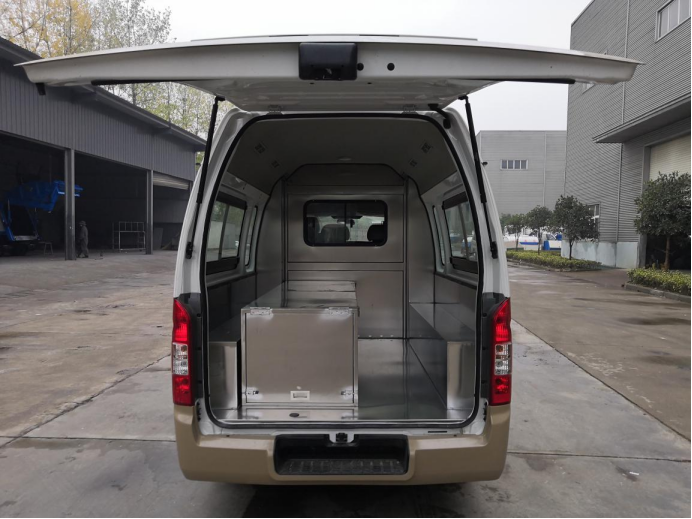 產品簡介 1. 主要配置:前空調,前暖風,電動車窗,ABS+EBD, 遙控鑰匙2. 改裝部分采用304L不銹鋼制作,中間不銹鋼隔墻安裝拉窗,不銹鋼地板,不銹鋼常溫棺不銹鋼擔架,加兩側玻璃下不銹鋼裝飾 ,根據您的要求設計改裝方案,模板一次成型,隔墻密封,拒串味。可以廠家自提,也可以付定金貨到付款。(冰棺選裝,后空調選裝,可視系統選裝,對講系統選裝)